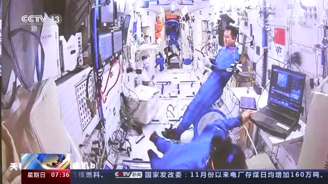 总台央视记者 刘冠青:这里是航天员中心的航天员支持中心的监控大厅,在我身后的大屏幕上大家可以看到的是天和核心舱,这个是天和气闸舱的定向摄像机。现在神舟十三号航天员乘组正在进行他们在轨工作的第一次紧急撤离演练,这一次的演练主要是模拟核心舱遭遇撞击,内部产生了失压的情况,三名航天员要紧急撤离到神舟十三号的返回舱当中。
