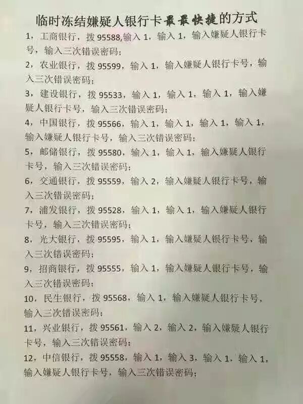 《临时冻结嫌疑人银行卡最最快捷的方式》,
