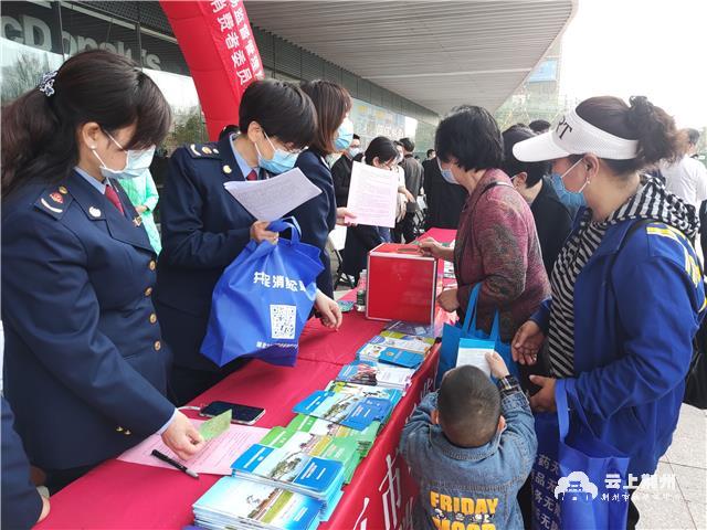 在荆州区万达广场,来自荆州区市场监管局、消费者委员会、商务局、农业农村局、烟草专卖局等19家单位的工作人员,给市民们宣传各种消费知识,为群众消费和避开陷阱提供指引。