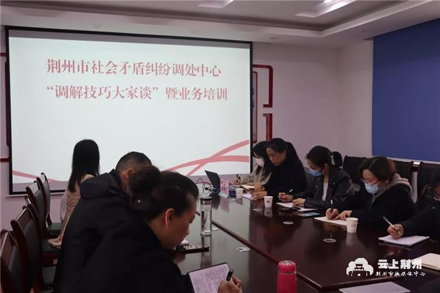 云上荆州报道:3月17号下午,根据年度工作计划,荆州市社会矛盾纠纷调处中心“调解技巧大家谈”暨业务培训首期开讲。中心全体工作人员参加学习,荆州区人民法院立案庭副庭长张艳丽应邀就人民调解协议司法确认实务作专题讲解。