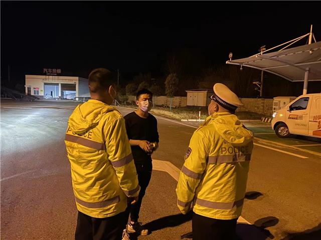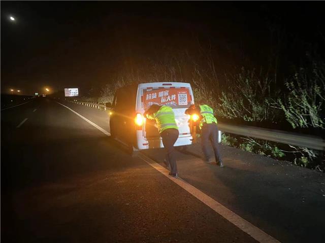 当晚,民警巡逻过程中发现在距离石首服务区1.3公里处有一辆电动汽车停在应急车道,驾驶员正准备往前走。民警立即靠边停车询问情况。