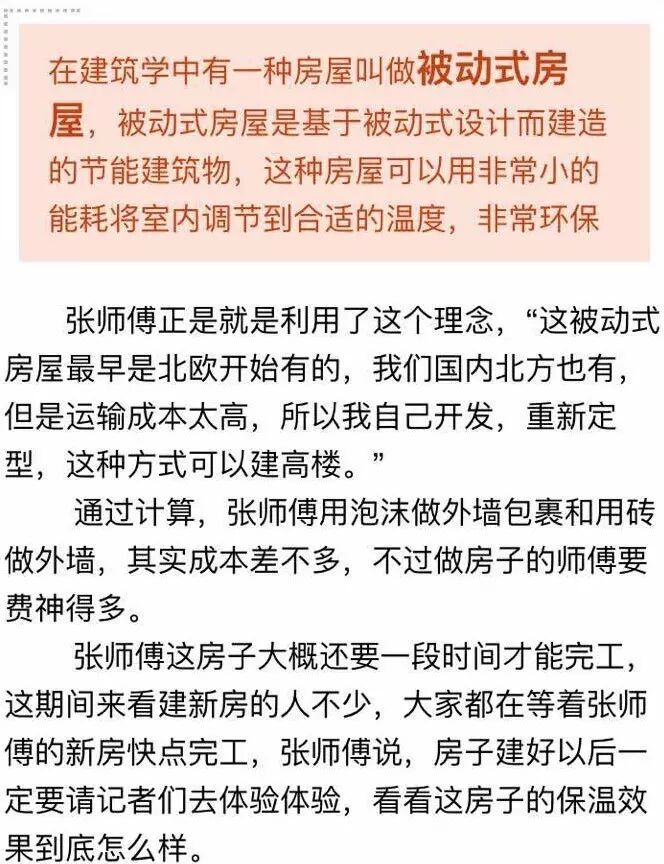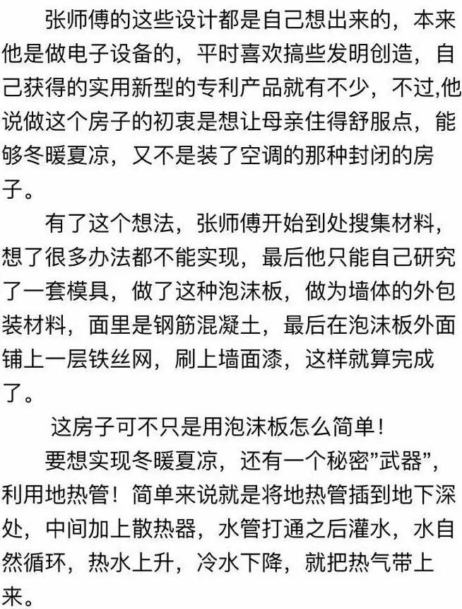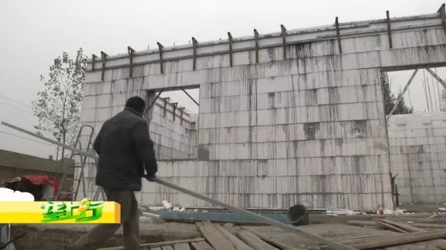 按乡亲们的说法,这泡沫包裹着混凝土做墙,不仅结实,还能做到冬暖夏凉。为了打消记者的疑虑,张师傅带着记者爬上了房顶。记者看到,这房墙的两边都是泡沫,中间都是用钢筋立起来的,这上面都看得到,张师傅说,这泡沫做模,不仅保温隔热,还隔噪音。