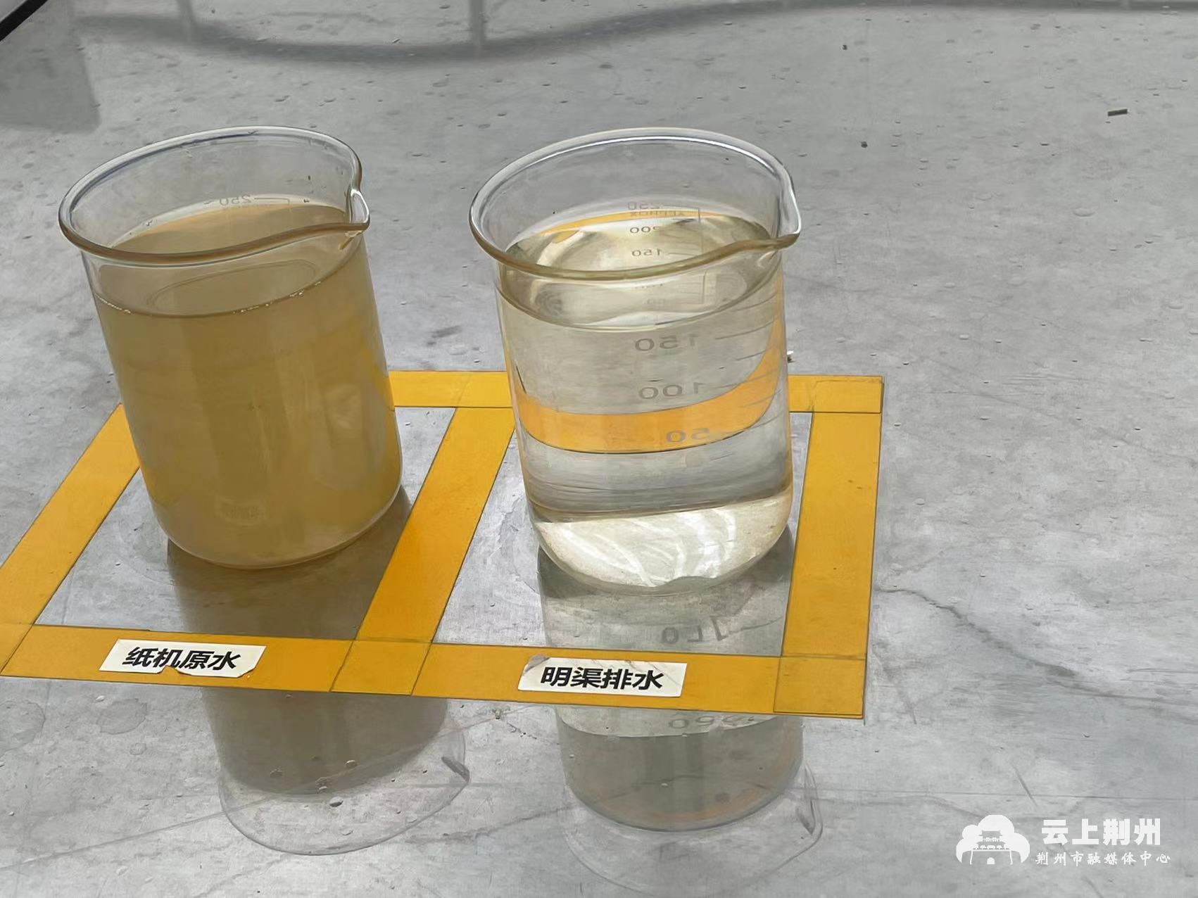 山鹰华中纸业有限公司常务副总经理江玉林告诉记者,按照国家的规定COD排放标准是50,现在他们COD排放量是17.61,远远低于国家排放标准,达到了国家二类水的标准,基本上跟长江水源无异。