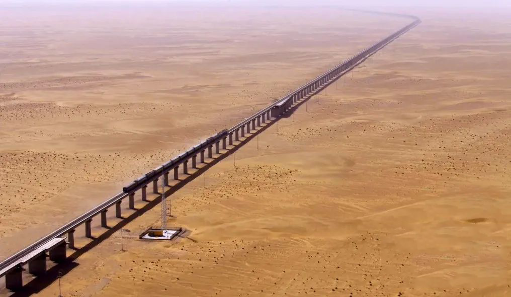 今日,和田至若羌铁路(和若铁路)开通运营,和田至若羌11小时26分可达。新疆铁路网进一步完善,形成世界首个沙漠铁路环线——长达2712公里的环塔克拉玛干沙漠铁路环线。