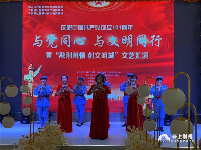 此外,荆州各乡镇也同步开展庆祝活动,洪湖市戴家场镇举行了庆祝中国共产党成立101周年文艺演出,让群众在“家门口”享受“文化大餐”,引导大家把感恩党、感恩新时代的真挚情感化为奋斗建功的实际行动。