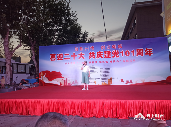 6月28日晚,沙市区解放街道白云桥社区开展了“融荆州情·创文明城”喜迎二十大 共庆建党101周年的文艺汇演活动。