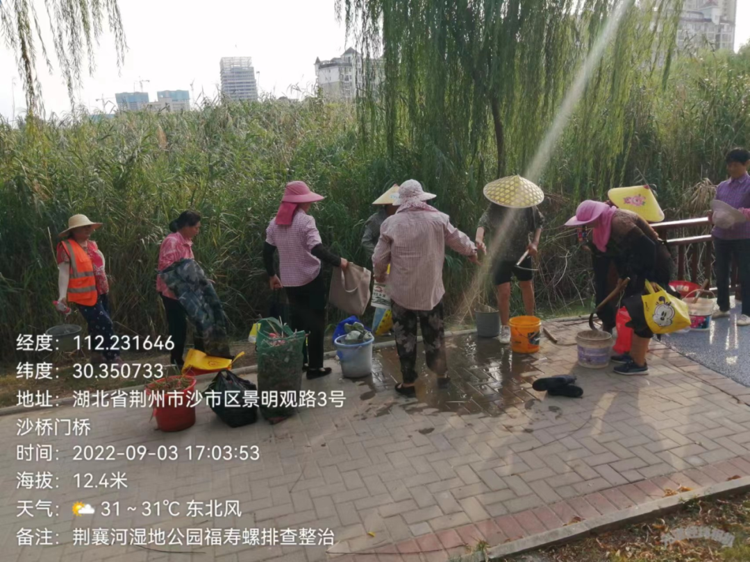 近一周来,全区各镇街道迅速行动,开展福寿螺繁殖卵块排查处置工作。立新街道每天组织劳力10余名,对荆襄河湿地公园、西干渠等区域福寿螺繁殖的卵块进行人工铲除集中销毁;岑河、观音垱、锣场等镇分村组分别开展排查清理工作,采取人工破坏卵块、集中深埋等措施销毁福寿螺卵块。