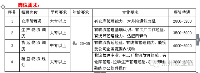 3、武汉敏实,普工,17-38岁,男性为主,可接受实习生,身心健康,吃苦耐劳,管吃住,月综合工资3500-5000元。