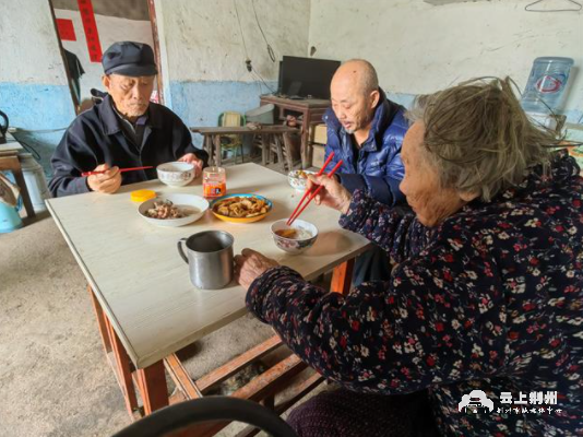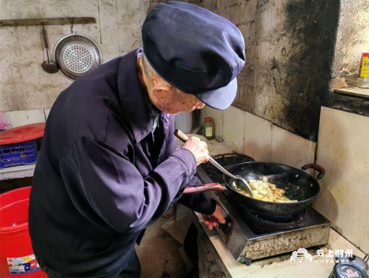 陈步汉儿子今年65岁,在2015年因高血压中风全身瘫痪,一直是陈步汉和老伴在照顾。老伴因为患有糖尿病,前年开始生活无法自理,陈步汉就把家里的活都揽过来了。还别说,现在的陈步汉做起菜来还挺香。饭菜上桌,陈步汉会时不时给儿子夹菜。虽说有点耳背,老伴有什么需求,一般只需一个动作或一个眼神他就能很快明白。