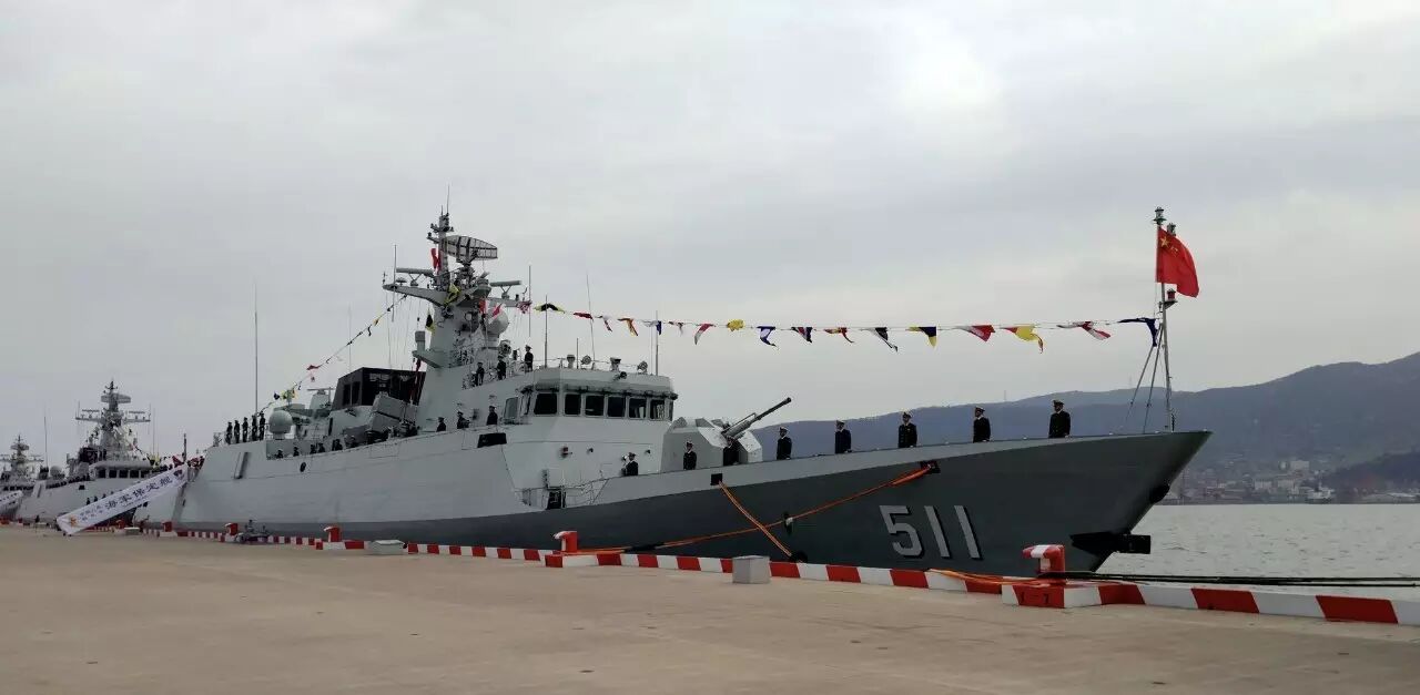 昨天(12月12日)上午,我国自行设计制造的某新型导弹护卫舰保定舰、菏泽舰入列命名授旗仪式在江苏连云港某军港举行,标志着两艘舰艇正式加入人民海军战斗序列。