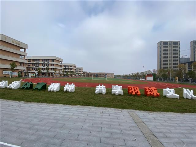 醒目的共享羽球文化标语、拥有美好寓意的羽毛球雕塑、还有灯箱牌上的荆州籍羽毛球冠军……校园里羽毛球元素无处不在。