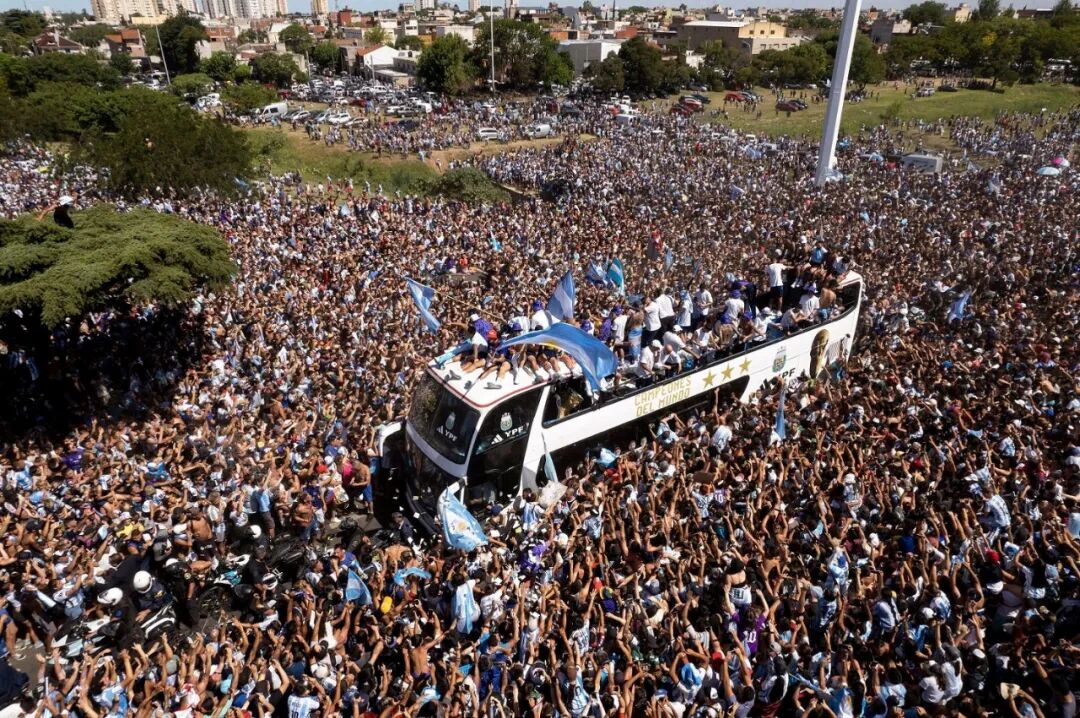 大巴于当地时间11时45分(格林尼治时间14时45分)从阿根廷足协总部出发,前往位于市中心的方尖碑。据报道,大巴三个小时只行进了10公里,沿途因数以万计身穿蓝白球衣的球迷导致道路拥堵而放慢了速度。