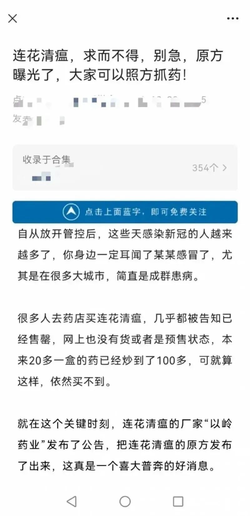 除此以外,在网络中也有文章称,“连花清瘟的原方对外公布,大家可以按方抓药”。