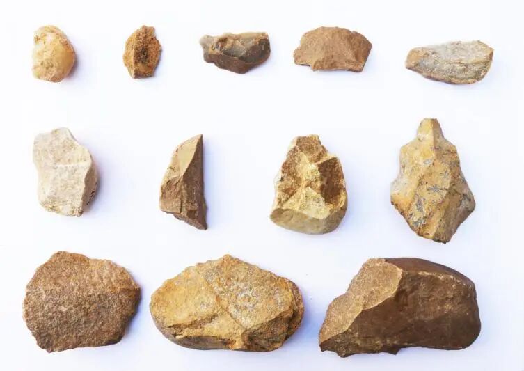 第二地点为2022年发掘处,在发掘区外围的施工破坏断面处采集有以砾石原料打制而成的大型砍砸器、小型刮削器、石核等石制品50余件;