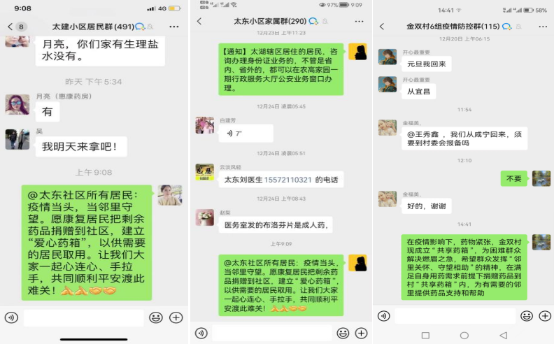 许多居民在收到倡议后,纷纷“慷慨解囊”,把自家多余的药物捐出来,社区集中消毒后,及时分享给家中一时没有药品的邻居们,通过药物传递爱心,守护邻里健康。