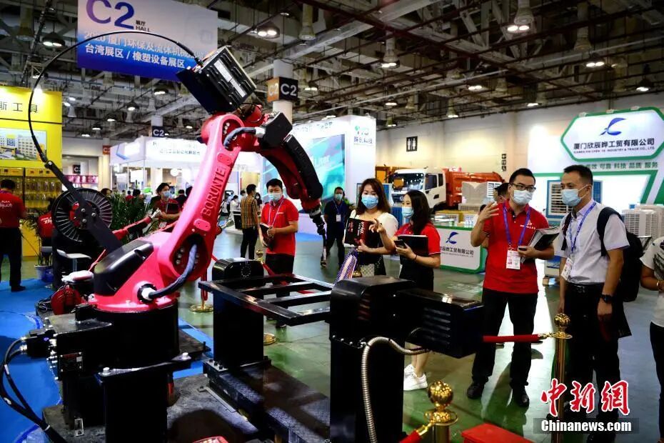 资料图:2020年7月9日,2020厦门工业博览会暨第24届海峡两岸机械电子商品交易会在福建厦门揭幕。图为客商了解新型模具设备。中新社记者 王东明 摄