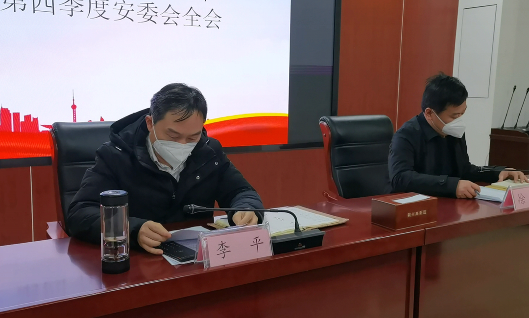 12月28日下午,荆州高新区2022年度第四季度安委会全会召开。高新区党工委副书记、管委会主任李平出席会议并强调,要以“时时放心不下”的责任抓紧抓好安全防范工作,牢牢守住安全底线,坚决遏制重特大事故的发生,切实担负起“促一方发展、保一方平安”的政治责任。