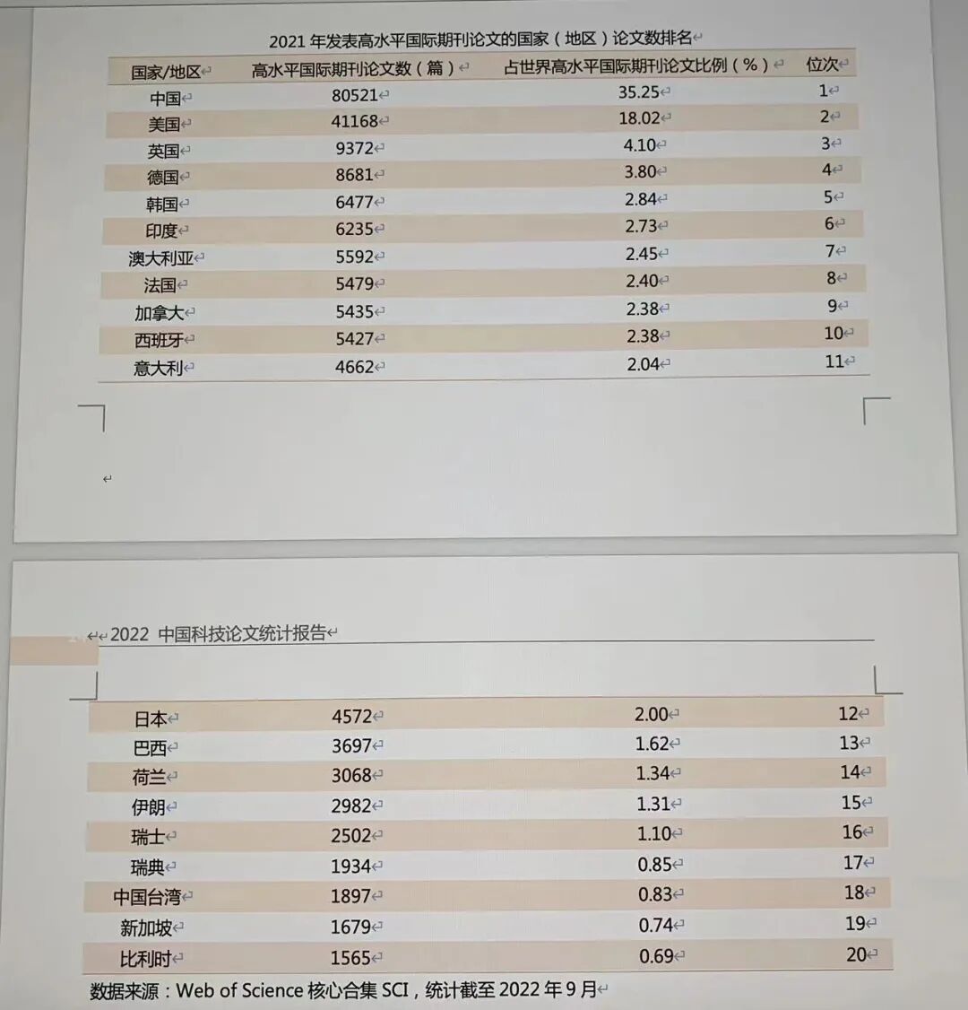 12月29日,中国科学技术信息研究所在线公布《2022年中国科技论文统计报告》。报告显示,我国热点论文世界占比持续增长,世界热点论文数量首次排名第一位;高被引论文数量继续保持世界排名第二位,占世界份额提升近3个百分点。