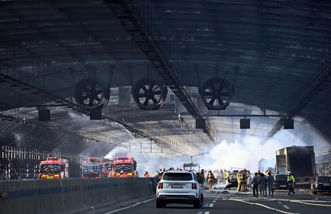 日前,韩国第二京仁高速公路的一处隧道内发生火灾,致5人死亡。
