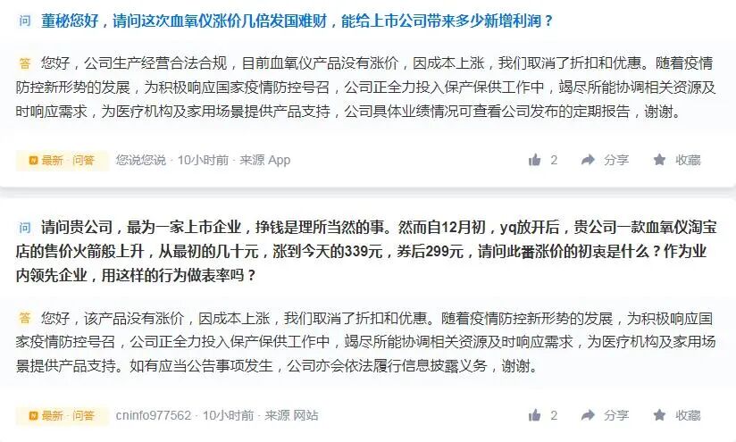 “这次血氧仪涨价几倍发国难财,能给上市公司带来多少新增利润?”