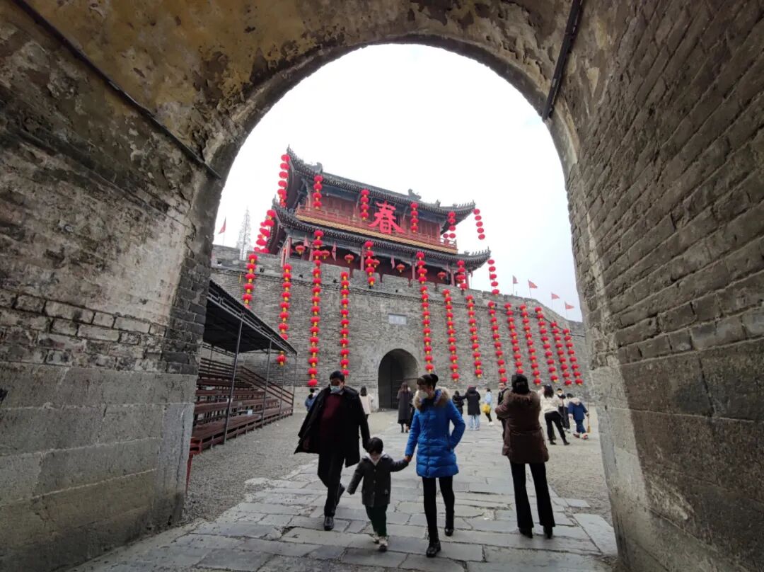 元旦前夕,古城东门景区装扮一新,人们在喧天锣鼓声中喜迎新年到来。(荆州日报签约摄影师李德力 摄)