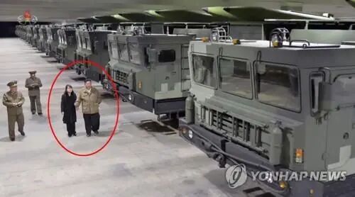 朝鲜中央电视台前日报道劳动党八届六中全会结果时,将金氏父女参观导弹基地的照片作为背景画面,未予特别说明。照片显示,金主爱身着黑色衣领的大衣,挽着父亲的胳膊,边走边看10多枚“火星-12”弹头和装备朝版伊斯坎德尔“KN-23”导弹的10多辆发射车。