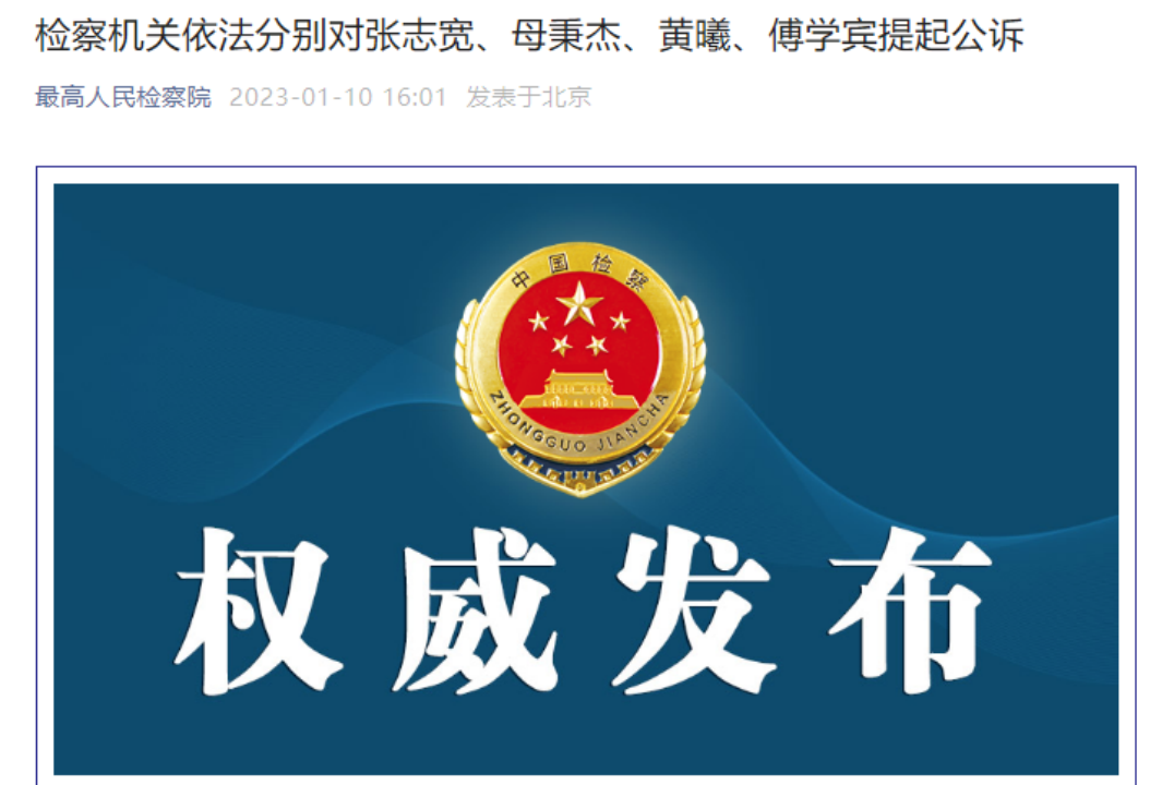 1月10日,最高检官微信息显示,检察机关依法分别对张志宽、母秉杰、黄曦、傅学宾提起公诉。其中,吉林检察机关依法对中国建设银行机构业务部原总经理黄曦涉嫌受贿案提起公诉。
