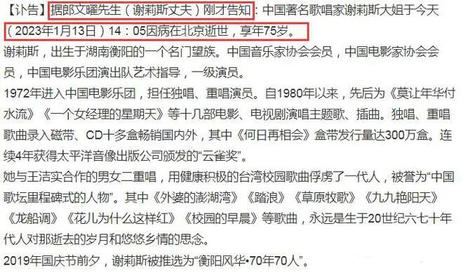 谢莉斯的丈夫郎文曜先生亲自发布讣告