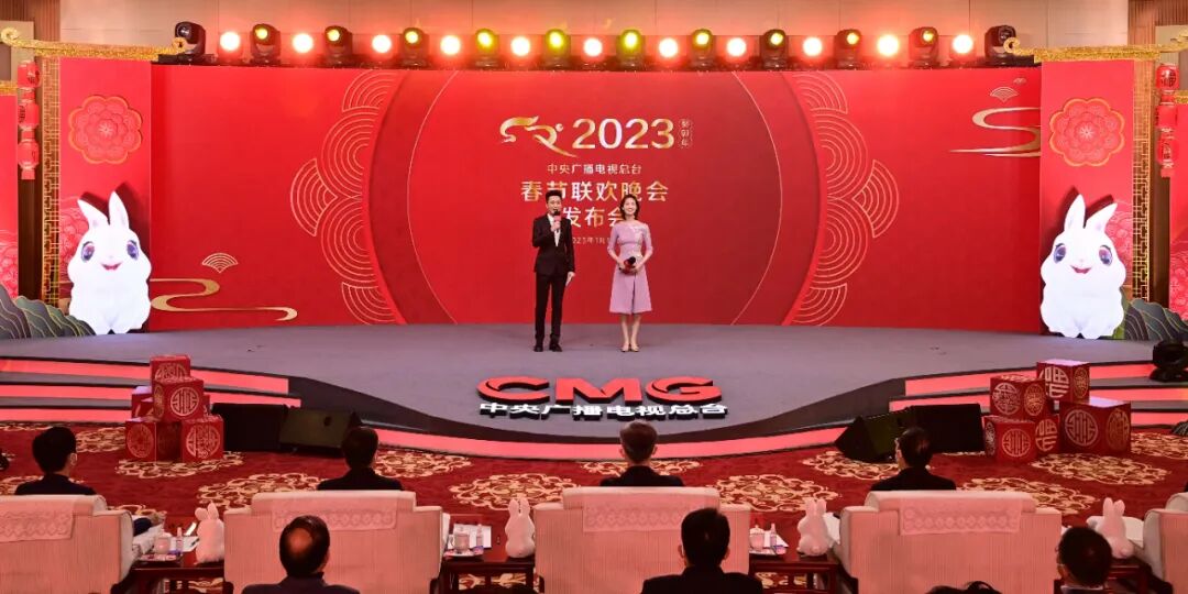 1月16日,中央广播电视总台《2023年春节联欢晚会》举行新闻发布会,介绍多项技术创新亮点,官宣主持人阵容,并首次发布春晚舞美宣传片和吉祥物“兔圆圆”动画短片。中央广播电视总台副台长王晓真参加发布会。