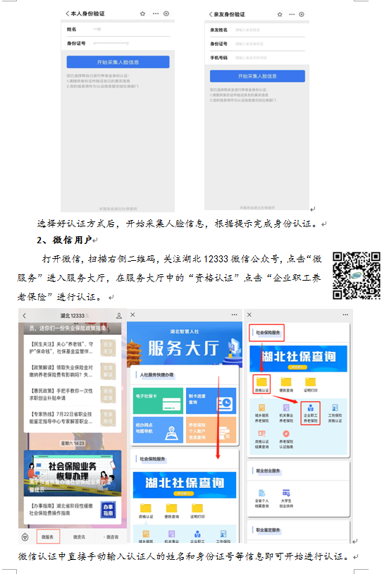 在沙市区领取企业职工养老保险待遇的离退休人员可选择移动终端(手机),通过关注“湖北12333”微信公众号-微服务-资格认证-企业职工养老保险或打开支付宝搜索湖北智慧人社-资格认证-企业职工养老保险或下载“老来”app办理沙市区企业职工养老保险待遇领取资格认证业务。