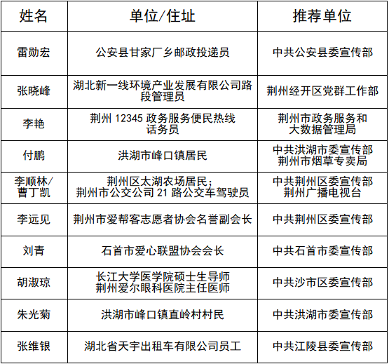李艳,女,43岁,荆州12345政务服务便民热线话务员。2020年2月26日,李艳接到沙市区太岳路社区居民郑方芹来电, 哭诉其夫查出晚期结肠癌,7万元手术费却毫无着落,疫情封控期间也难以找亲友借款,已经走投无路,李艳向领导报备后,快速与太岳路社区协调,最快速度为病人办好了医保。手术后,病人出院还需自付1万余元,无力承担的郑方芹再次向12345求助,李艳倡议在热线内部举行募捐,最终募得善款1555元,后又协调社区联系医院担保缓期交款,给这个多灾多难的家庭带来极大信心和希望。事后,郑方芹专程送来锦旗致谢。工作上李艳勤勉高效,入职5年接听7万余个电话无一差评,连年获评热线先进工作者。