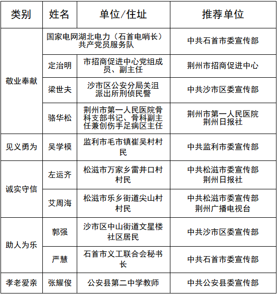 李顺林,男,荆州区太湖农场居民;曹丁凯,男,荆州市公交公司21路公交车驾驶员。2022年11月4日上午9点,老318国道太湖路段,一辆运载机械设备的大货车突然起火,冒出浓烟,情况危急。开车路过的李顺林立即借来灭火器爬上货车挺身灭火。谁知着火点突然冒出火花,李顺林躲避不及不慎摔伤送医。曹丁凯继续接力灭火,在消防员赶来前将明火扑灭,避免了更大的损失。他们义无反顾勇救火险,正是新时代勇担当的体现。
