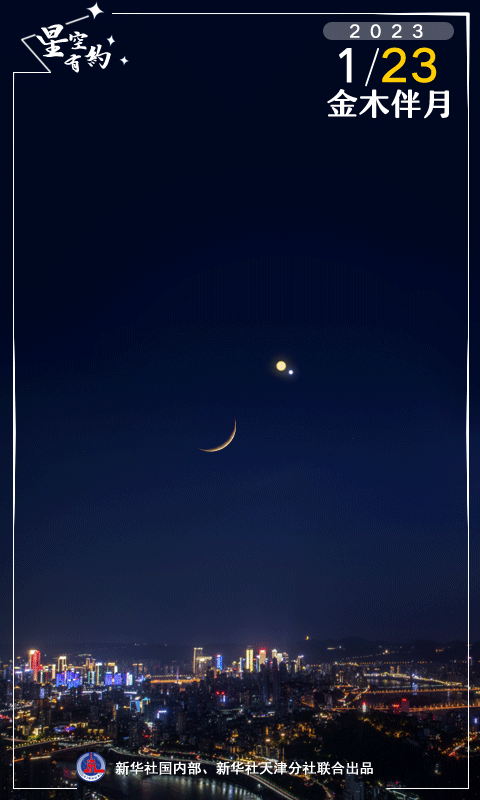 2023年首场“星月童话”即将浪漫上演。天文科普专家介绍,1月22日和23日的日落后不久,在西南方低空,太阳系的两颗行星金星与土星会离得非常近,上演“星星相吸”。有趣的是,23日傍晚,一弯细细的蛾眉月也会加入进来,来到双星身边,上演“月伴双星”。