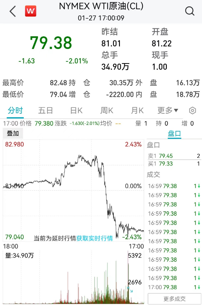 截至当天收盘,纽约商品交易所2023年3月交货的轻质原油期货价格下跌1.33美元,收于每桶79.68美元,跌幅为1.64%。2023年3月交货的伦敦布伦特原油期货价格下跌0.81美元,收于每桶86.66美元,跌幅为0.93%。