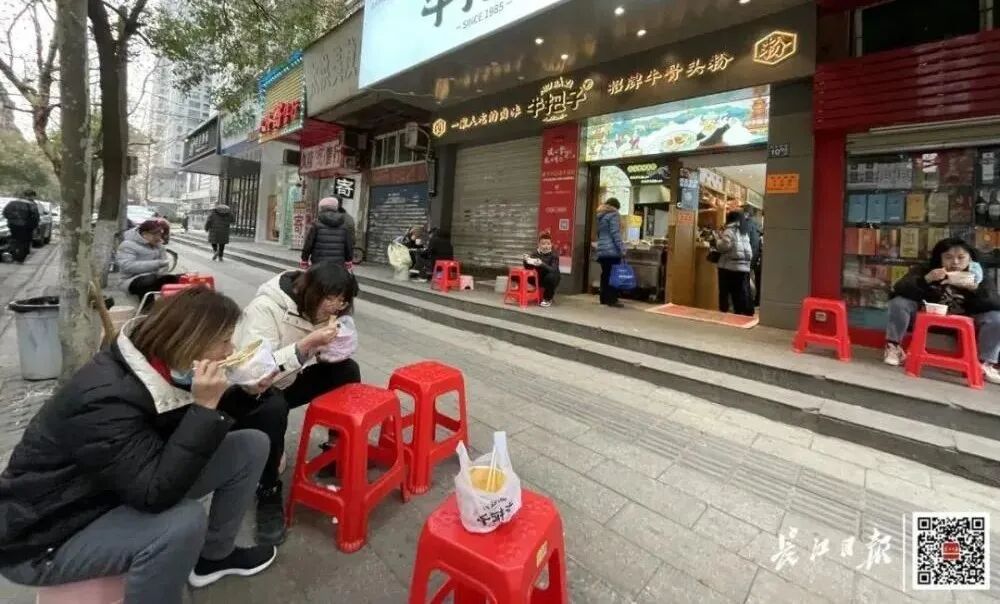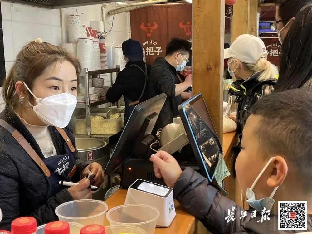“牛把子粉面馆”门口食客络绎不绝时不时有身穿橙色工作服的