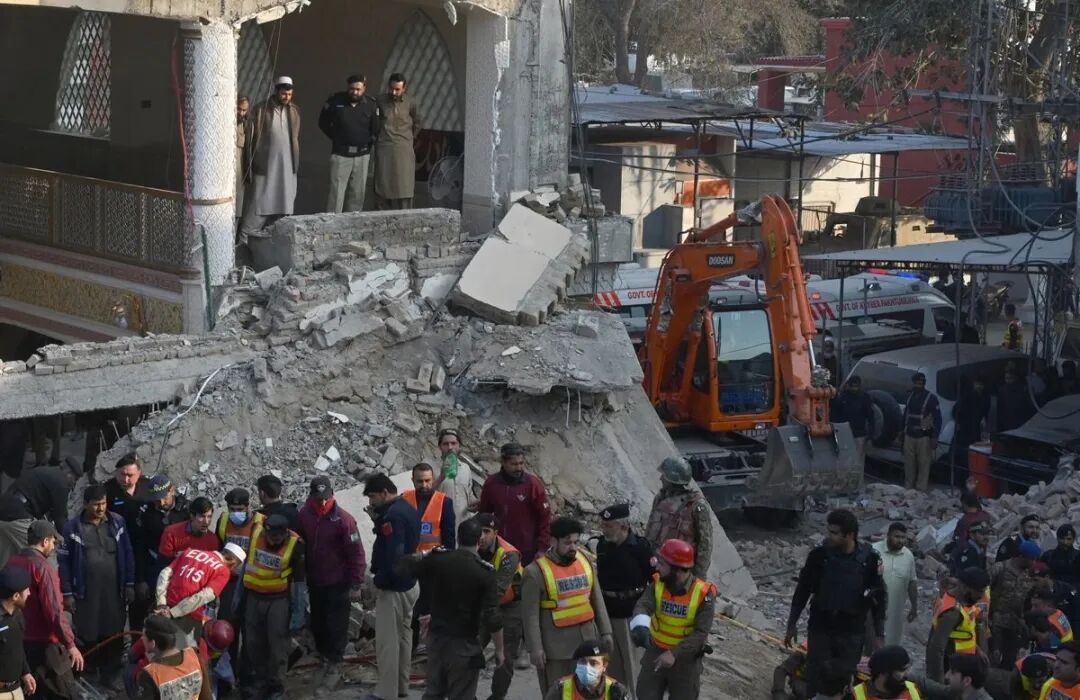 当地时间2023年1月30日,巴基斯坦白沙瓦,当地一座清真寺发生爆炸,救援行动正在进行。