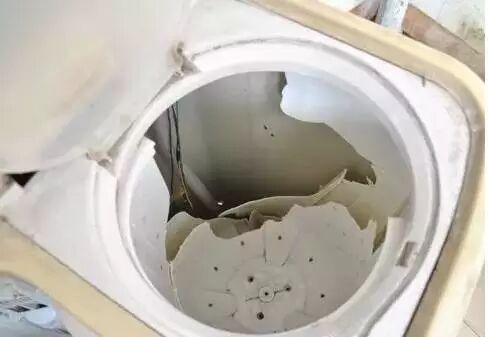 西安某市民把洗好的羽绒衣放入双缸洗衣机的甩干缸进行脱水时,第一次洗衣机抖得厉害,她当时调整了一下继续用,没想到刚离开就听见“嘭”的一声巨响,洗衣机居然爆炸了,顶盖被炸飞,洗衣缸下边也破裂。