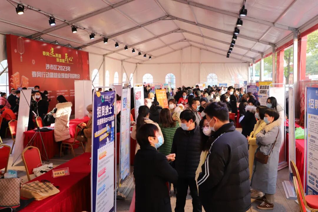 1月29日,北京路美佳华广场人头攒动,气氛热烈!沙市区2023年春风行动暨就业援助月招聘会在这里火热举办。