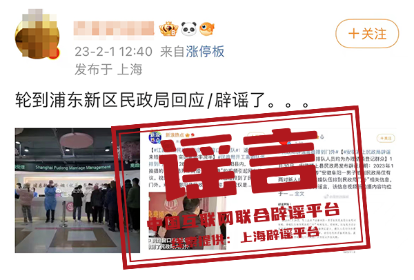 此前安徽也曾流传“阜阳一男子拍到民政局仅有两对新人结婚,离婚队伍排到民政局门外”相关信息,实为偷梁换柱、混淆视听。目前,公安机关已介入调查,并将依法作出处理。此外,北京市东城区、天津市和平区、深圳市龙岗区等地婚姻登记处工作人员均表示,春节后办理离婚的人没有明显的增多或减少。(来源:人民日报客户端、上海辟谣平台、安徽颍上县民政局、大江网等)