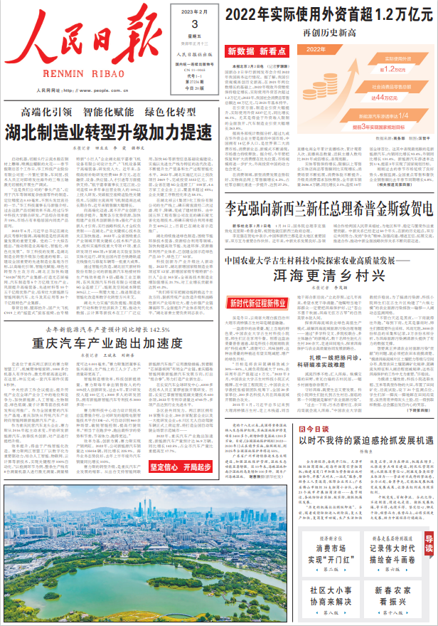 《 人民日报 》( 2023年02月03日 第 01 版)全文如下