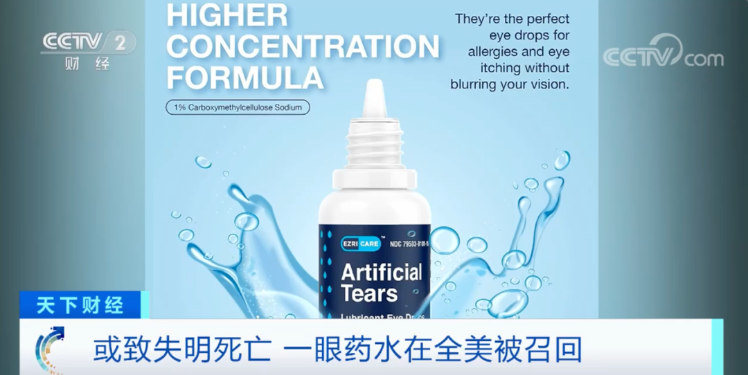 这款眼药水是人工泪液,用于润滑眼球。专家称,眼睛通过泪管与鼻腔相连,细菌可以从眼睛进入鼻腔,再进入血液等身体其他组织或部位。