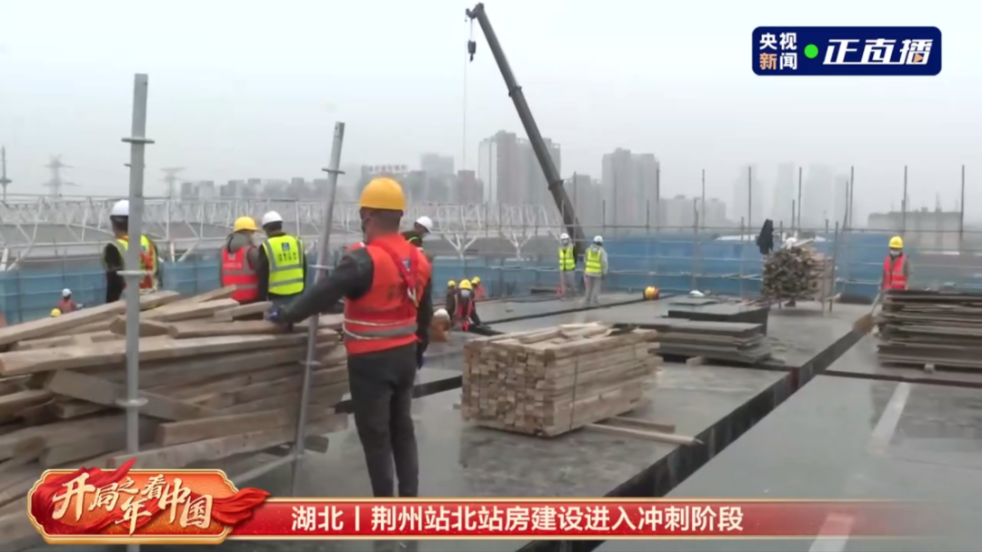 荆荆高铁荆州站北站房施工热火朝天