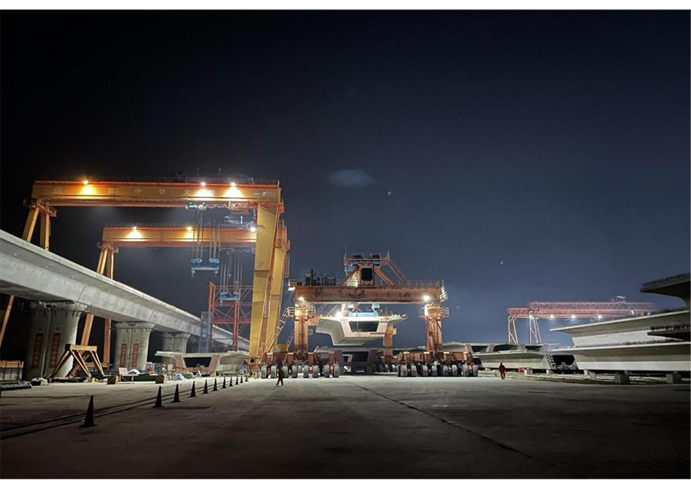 在荆荆高铁项目现场,以最快每天架设10孔箱梁的速度,全力推进架梁施工。预计本月底江汉运河特大桥连续梁拱主梁将全部合龙,全线重点工程、控制性工程也随之全部完工。荆荆高铁建成通车后,将实现湖北“市市通高铁”目标。