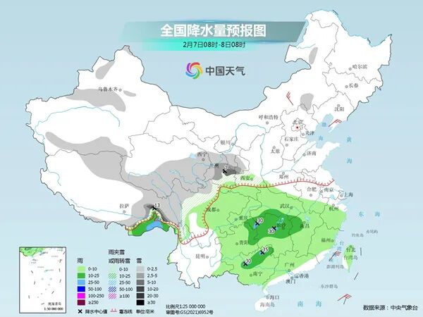 2月7日至9日,大范围雨雪天气将席卷我国中东部地区,江南等地部分地区有暴雨,西北、华北等地部分地区有大雪,局地暴雪。
