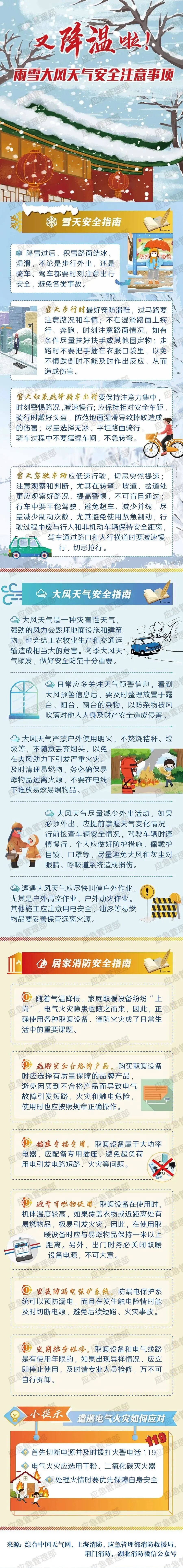 正值春运,提醒公众雨雪天气,道路湿滑,出行请注意交通安全。同时,气温较低,天气阴冷,外出及时添衣保暖。