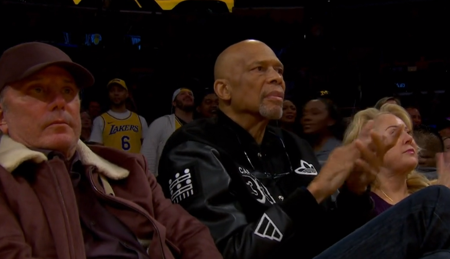 ▲贾巴尔现场见证詹姆斯成为新的历史得分王。 视频截图