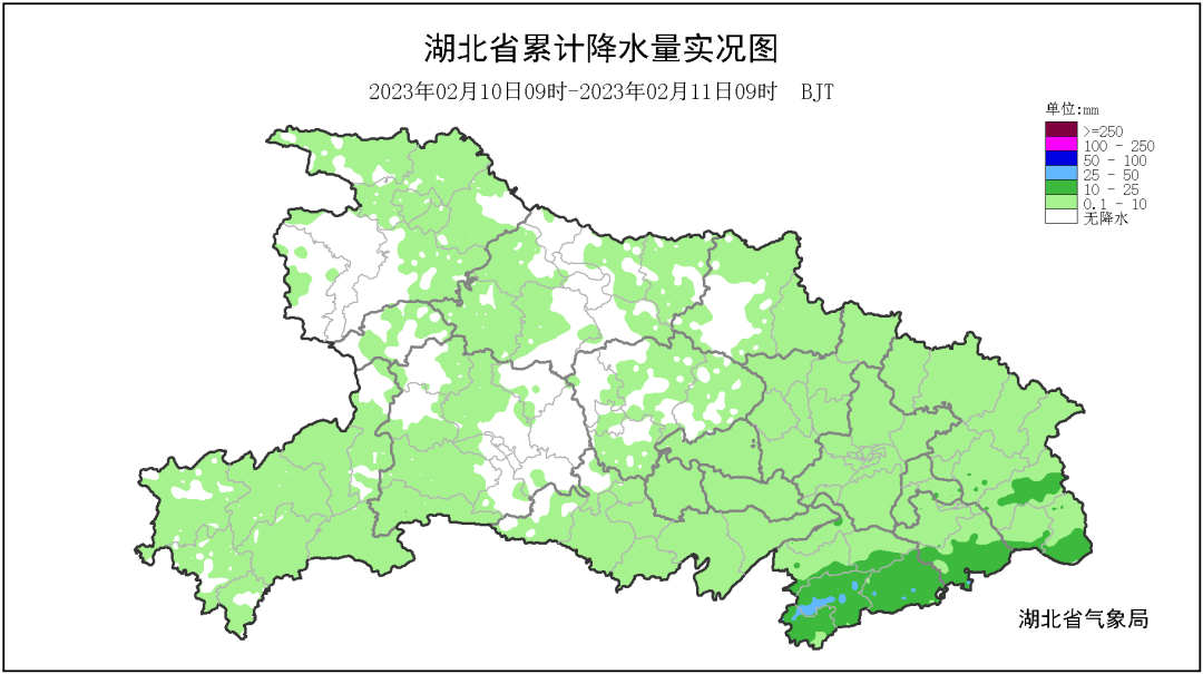 (2023年2月6~10日湖北省日照(日照时数)累计值分布)