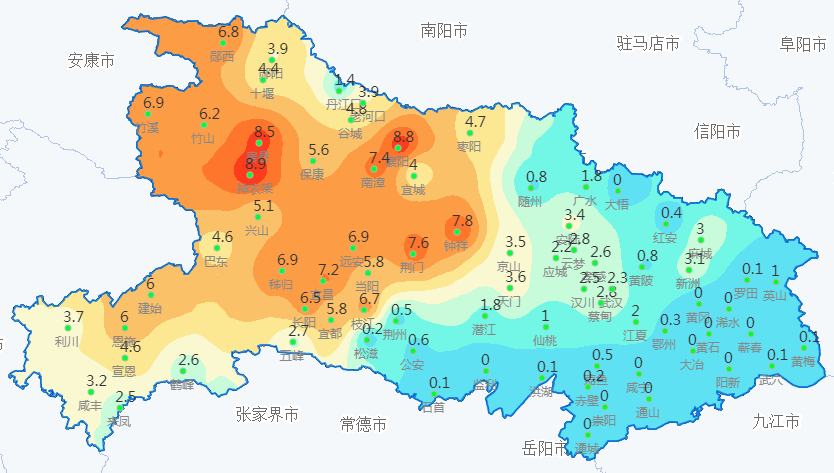 鄂东南出现小到中雨
