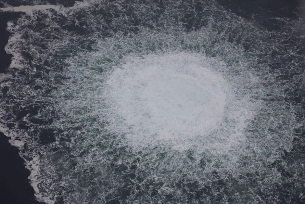 这张瑞典海岸警卫队2022年9月28日发布的航拍照片显示的是,“北溪-1”天然气管道仍在泄漏大量气体。新华社发(瑞典海岸警卫队供图)