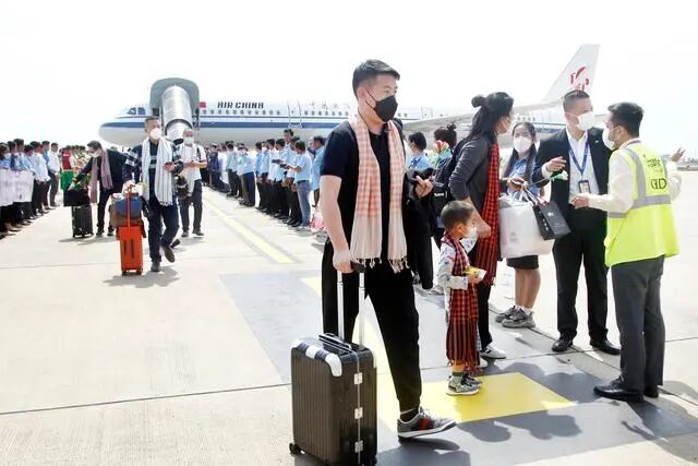 报道称,这批中国游客是从北京出发抵达金边,柬埔寨旅游部长唐坤、民航国务秘书处部长毛哈万那等在金边国际机场接机。报道还称,每位中国游客都收到了高棉特色的水布、鲜花和礼品袋。柬埔寨旅游部还安排人员在机场进行大鼓和舞蹈表演,表达对中国游客到访的由衷喜悦。